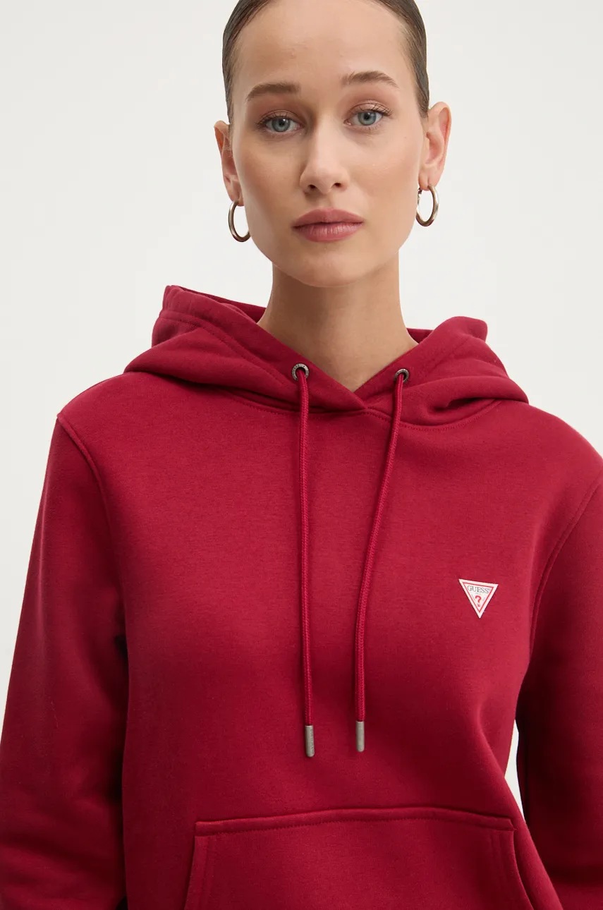 Guess Jeans bluza damska kolor czerwony z kapturem gładka W4YQ04 KC811