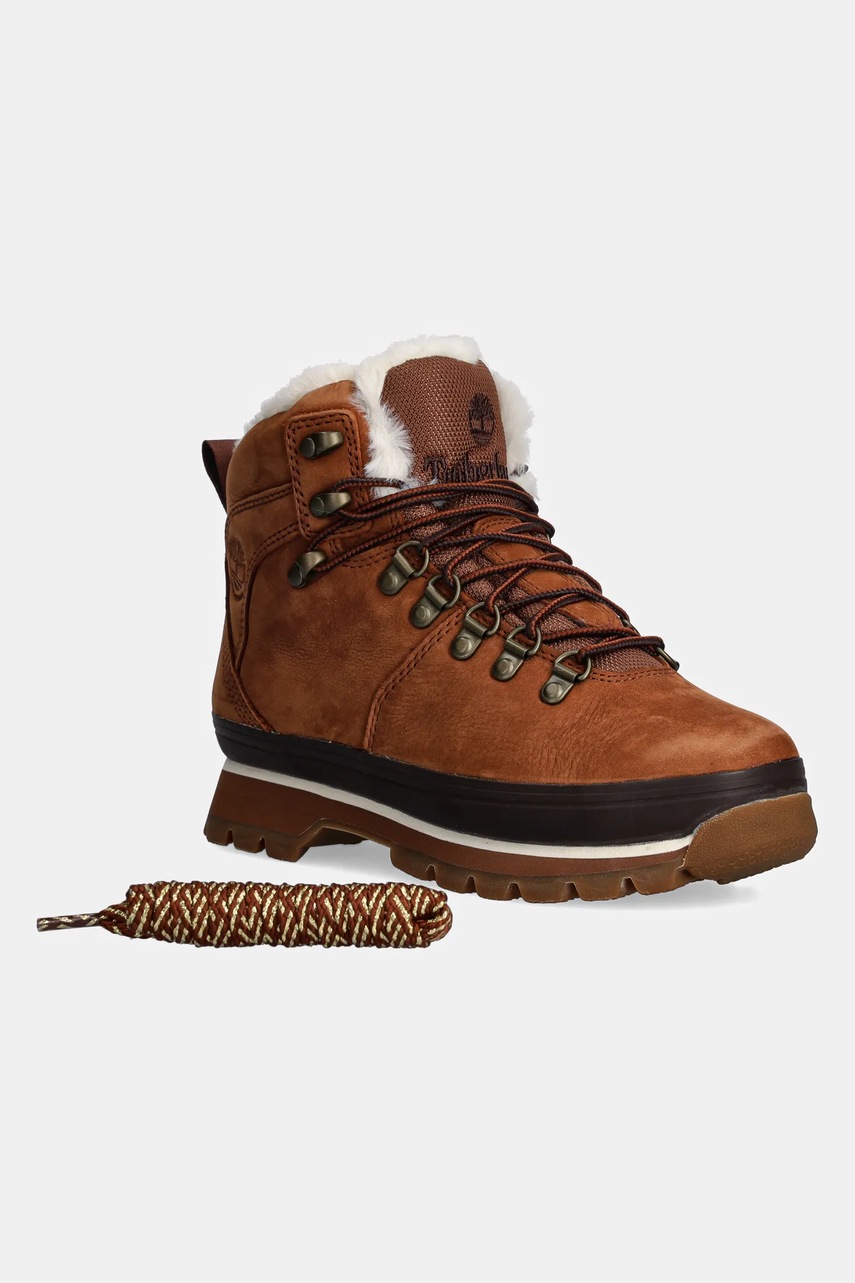 Timberland workery skórzane Euro Hiker damskie kolor brązowy na płaskim obcasie lekko ocieplone TB1A2KE7F131