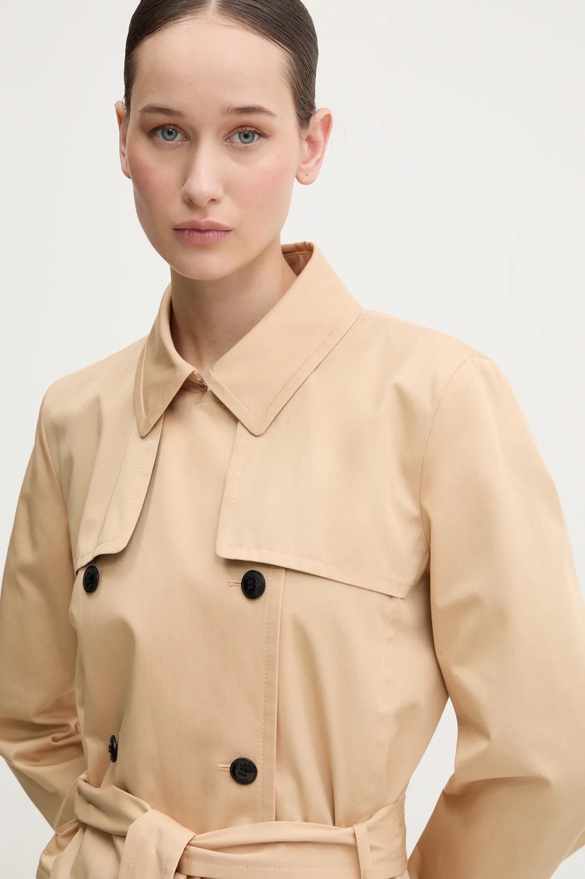 HUGO trencz damski kolor beżowy przejściowy dwurzędowy 50533902