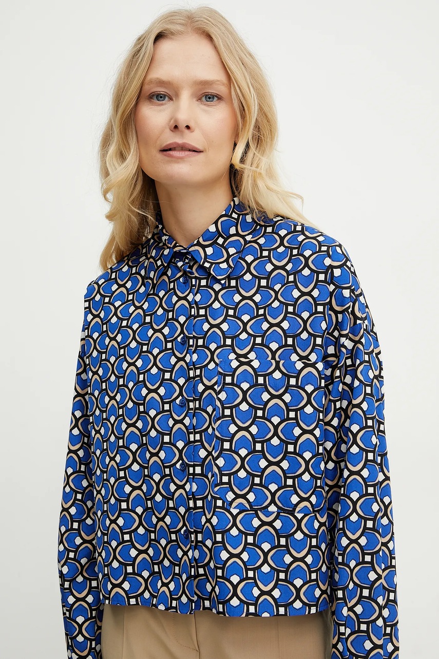 Weekend Max Mara koszula bawełniana damska kolor niebieski relaxed z kołnierzykiem klasycznym 2515111112600