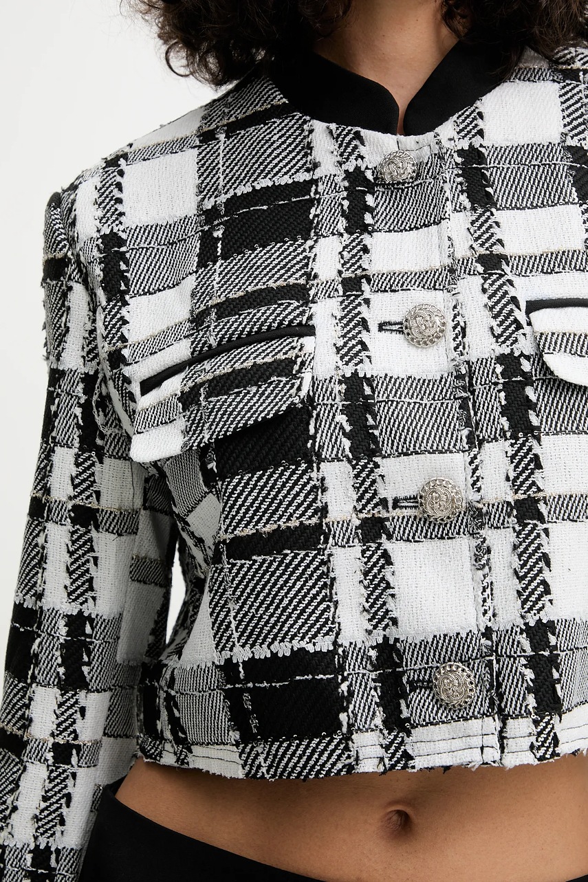 - Jednorzędowe zapięcie na guziki.