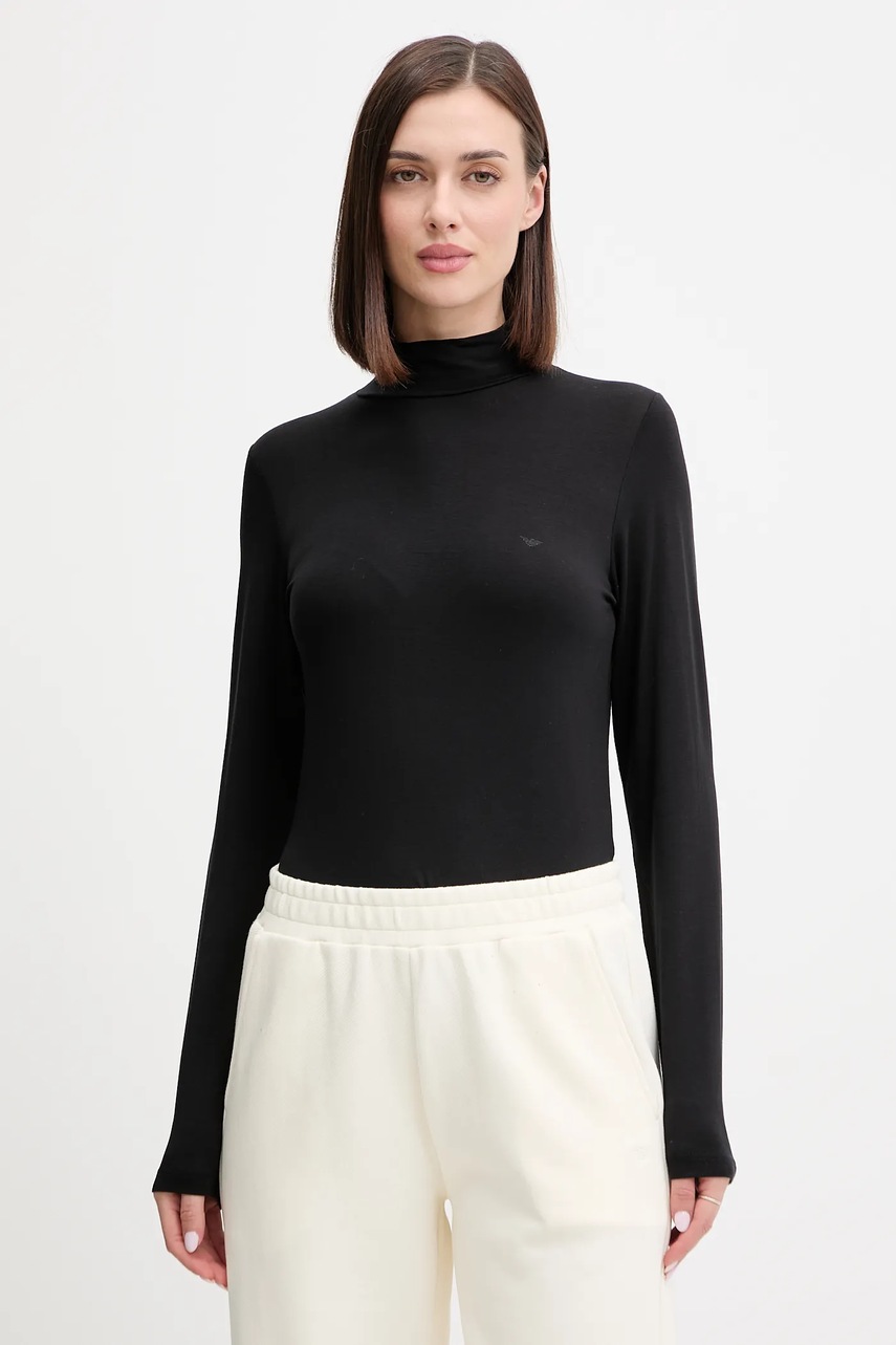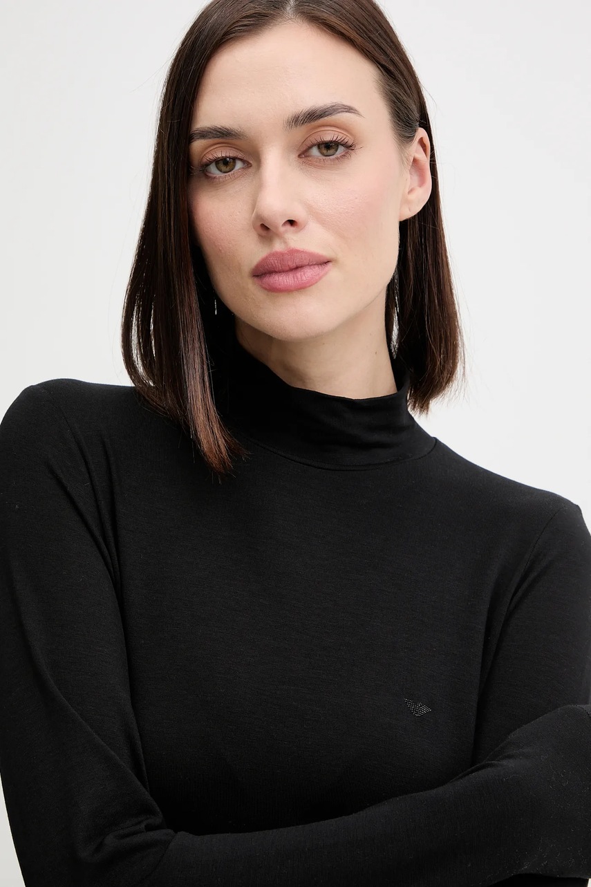 Emporio Armani Underwear longsleeve lounge z dodatkiem wełny kolor czarny z półgolfem EW002039 AF15361