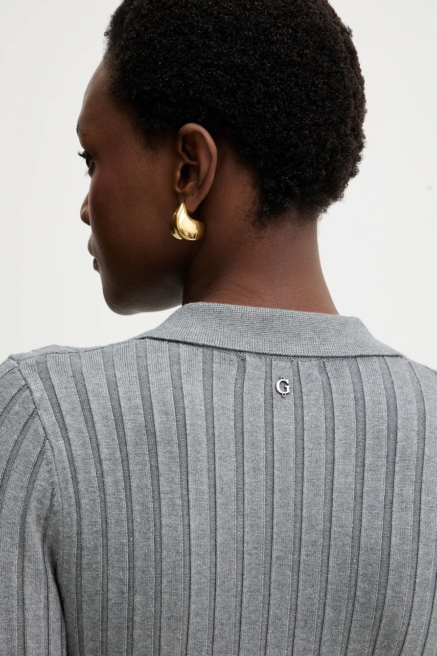 - Ma prosty, minimalistyczny krój i dekolt w kształcie litery V.