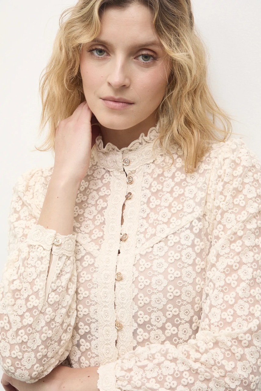 Answear.LAB koszula damska kolor beżowy regular ze stójką