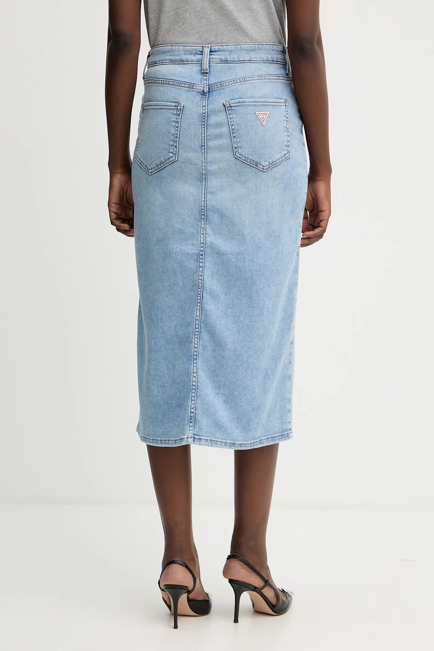 Guess spódnica jeansowa MILA kolor granatowy midi prosta W5YD1L D5QQ0