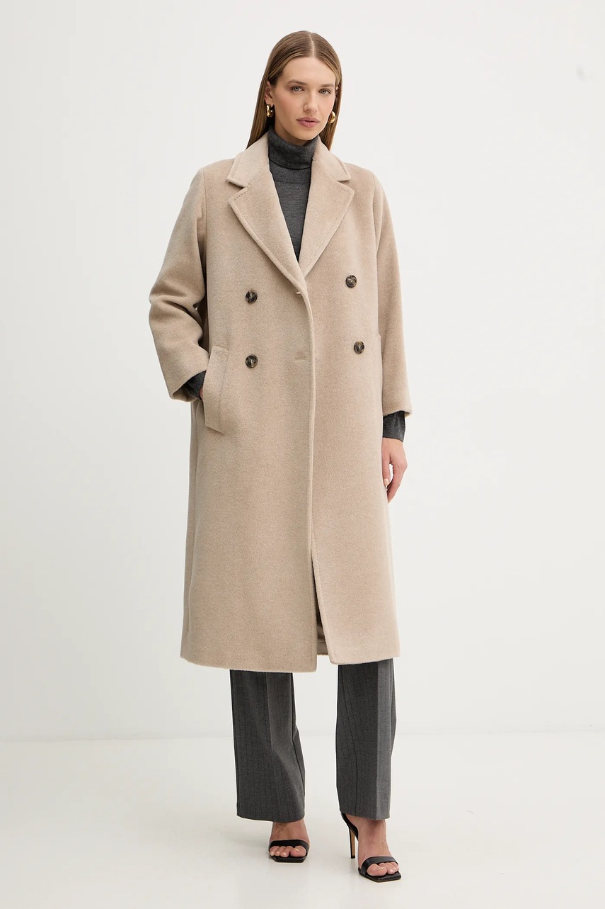 Weekend Max Mara płaszcz z dodatkiem wełny ZUFOLO kolor beżowy 2525016092600