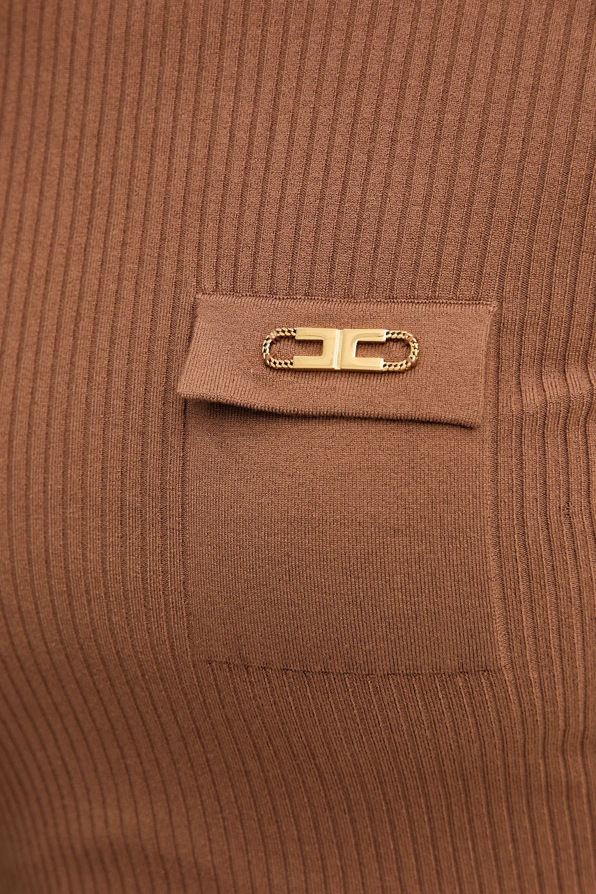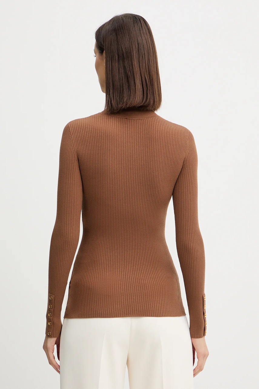 Elisabetta Franchi sweter z dodatkiem jedwabiu damski kolor brązowy lekki z golfem MK11B56E2