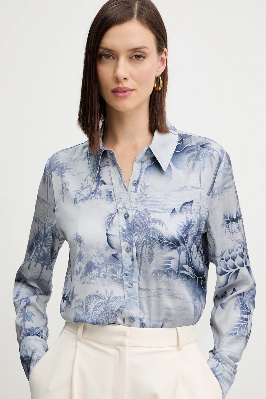 Guess koszula CONCETTA damska kolor niebieski regular z kołnierzykiem klasycznym W5YH03 WF1T2