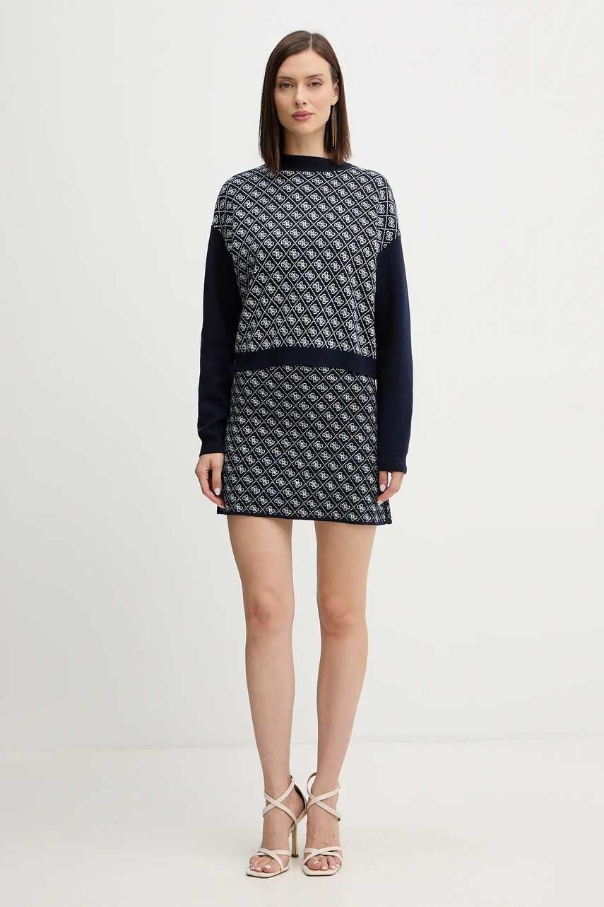 Guess spódnica z domieszką wełny AUBREY kolor granatowy mini ołówkowa W5BD81 Z3JD2