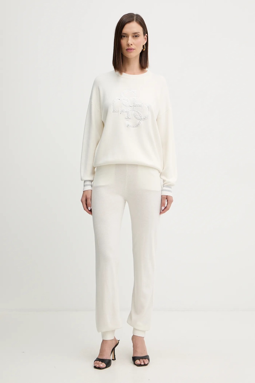Guess spodnie dresowe z dodatkiem kaszmiru MAGGIE damskie kolor beżowy gładkie O5BB04 Z3PK0