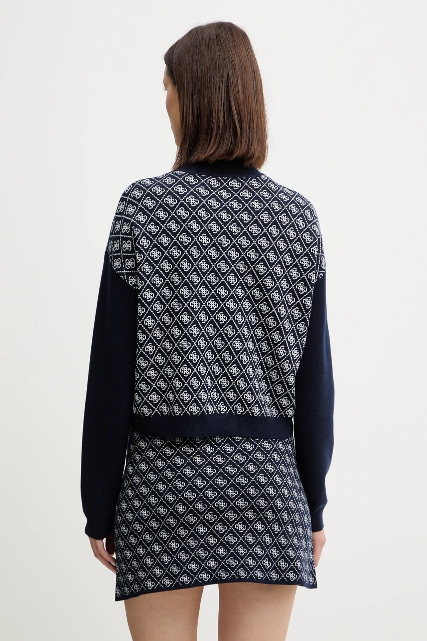Guess sweter z domieszką wełny AUBREY damski kolor granatowy z półgolfem W5BR23 Z3JD2