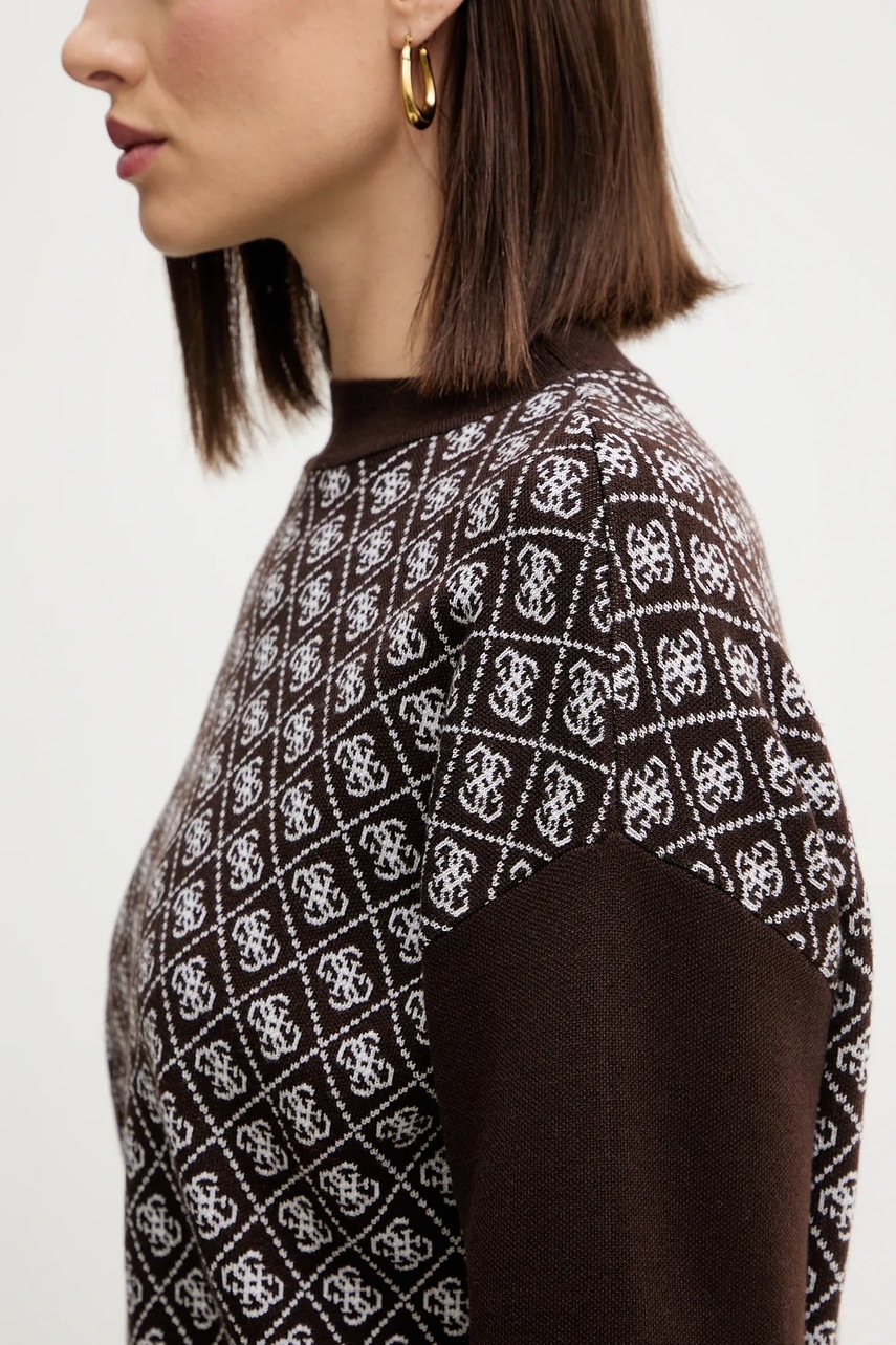 Guess sweter z domieszką wełny AUBREY damski kolor brązowy z półgolfem W5BR23 Z3JD2