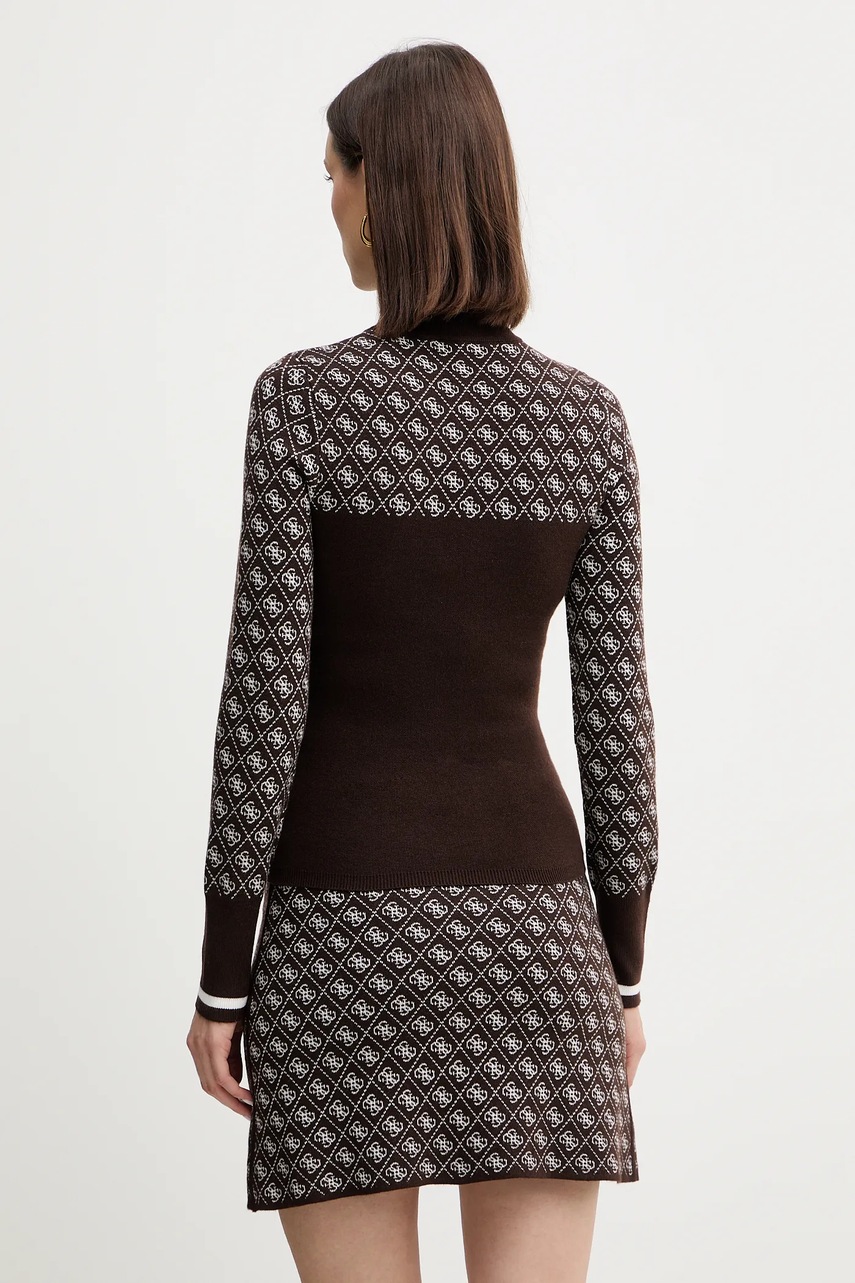 Guess sweter z dodatkiem wełny AUBREY damski kolor brązowy z półgolfem W5BR24 Z3JD2