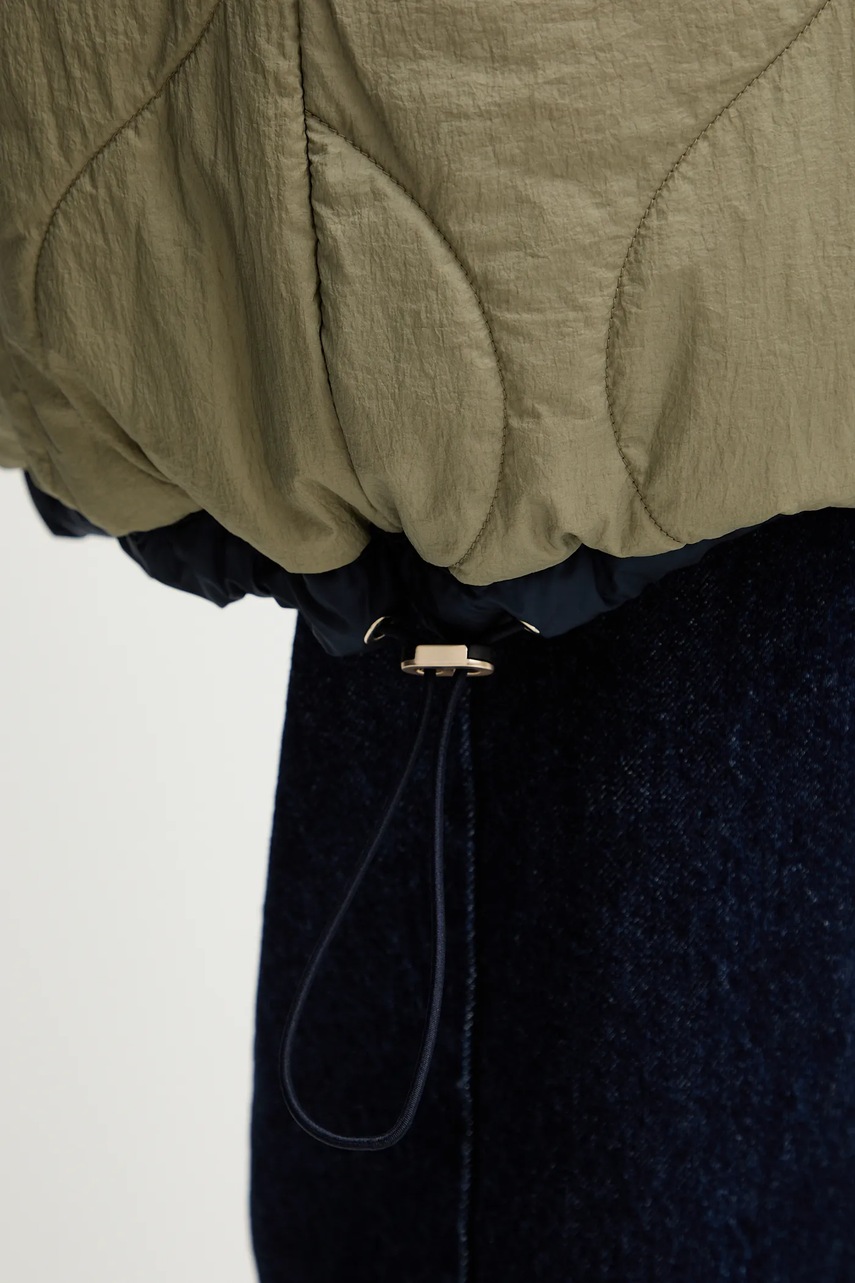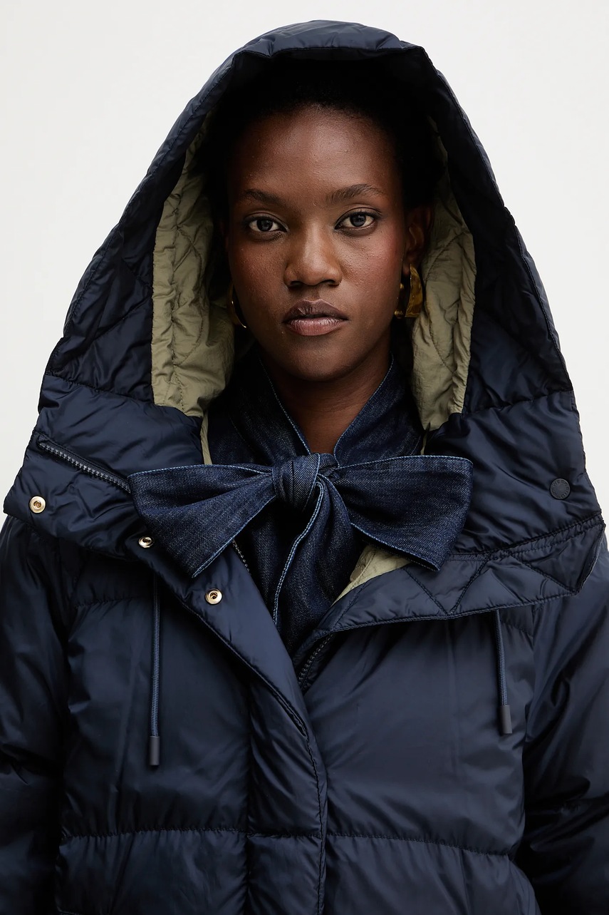- Podwyższony kołnierz i nieodpinany kaptur gwarantują dodatkową ochronę przed chłodem.