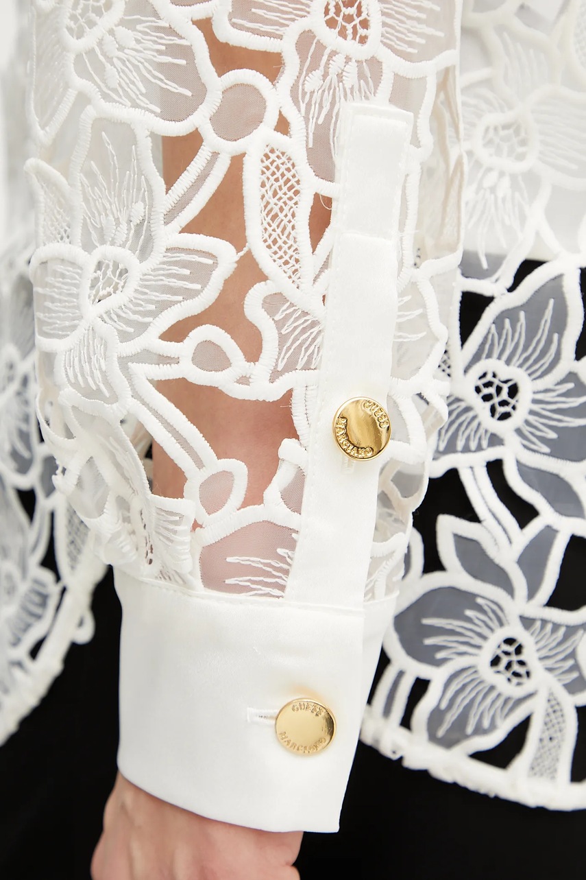 Marciano Guess koszula LIU damska kolor beżowy regular z kołnierzykiem klasycznym 5GGH35 7318A