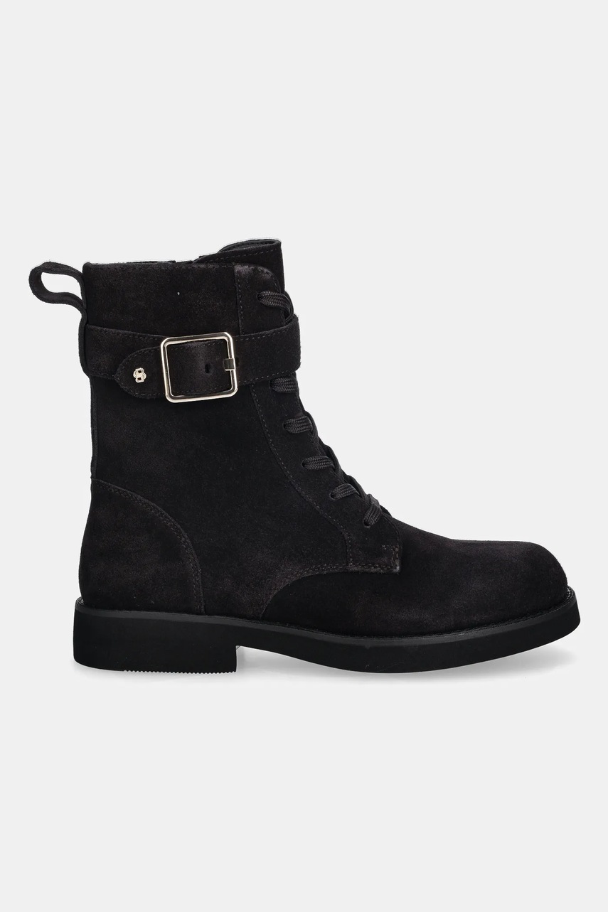BOSS botki zamszowe Eleri kolor fioletowy na płaskim obcasie 50552774