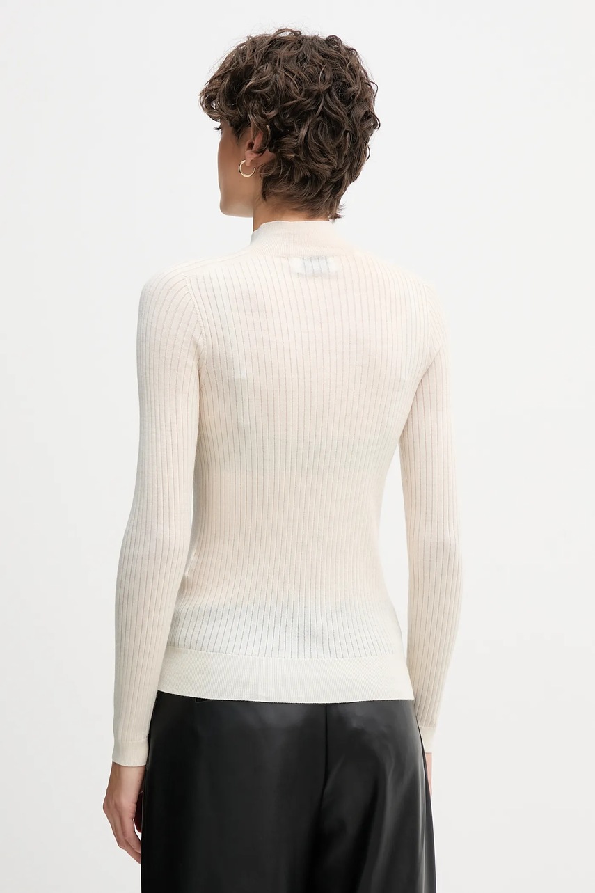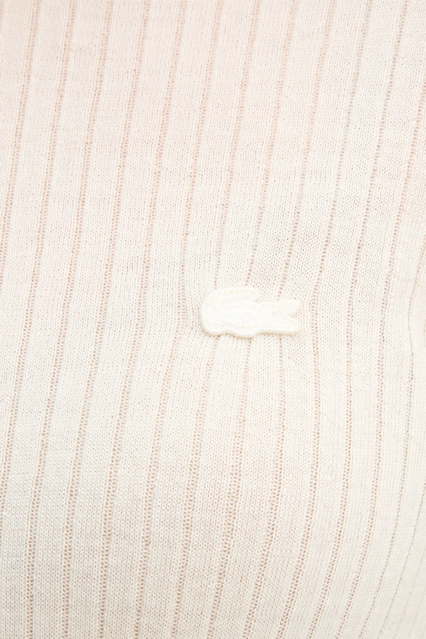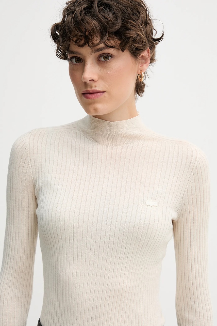 Lacoste sweter wełniany damski kolor beżowy lekki z półgolfem AF4189