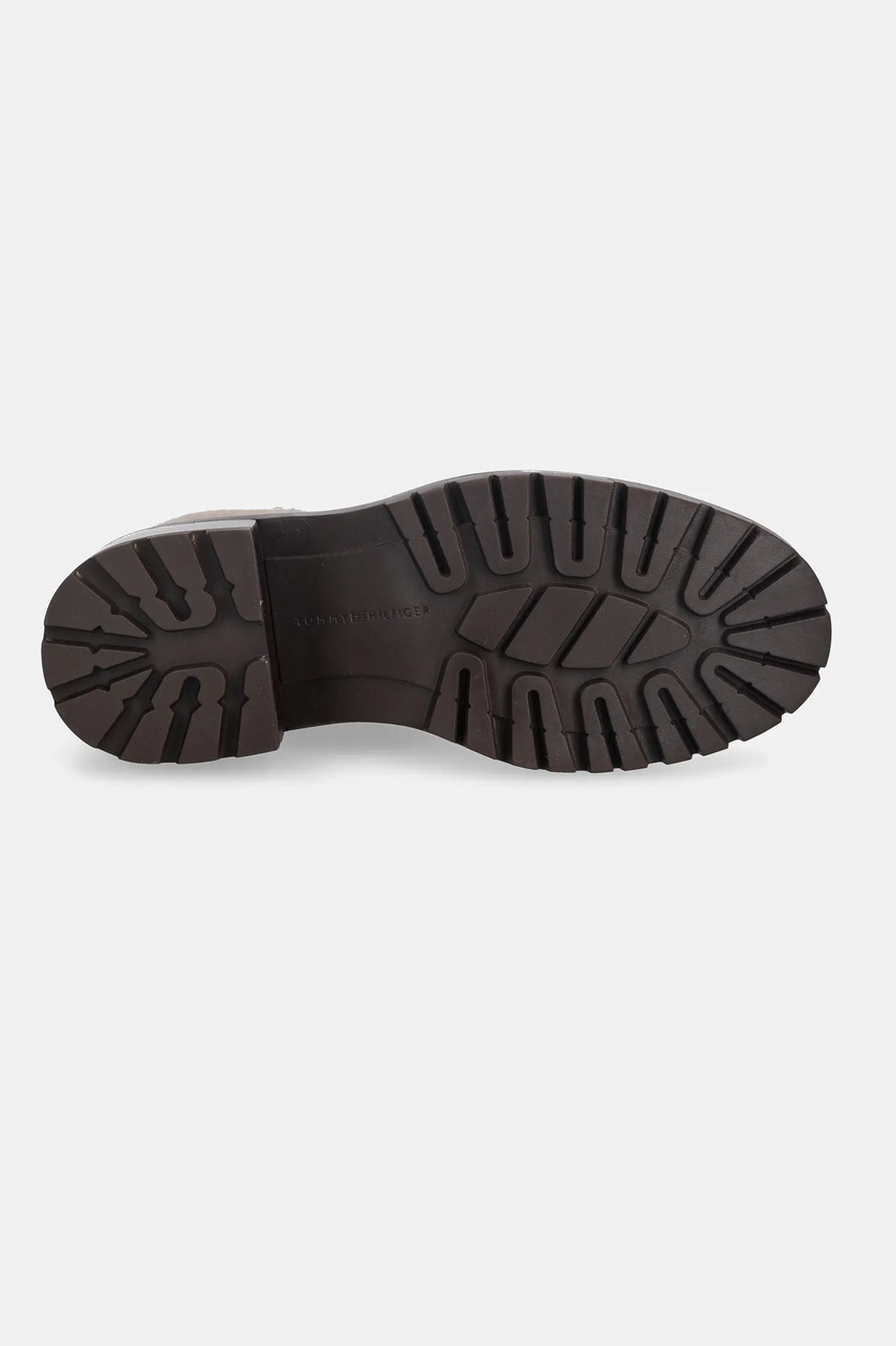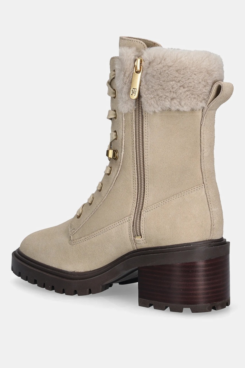 Tommy Hilfiger botki zamszowe TH SHEARLING LACE UP BOOT kolor beżowy na słupku lekko ocieplone FW0FW08999