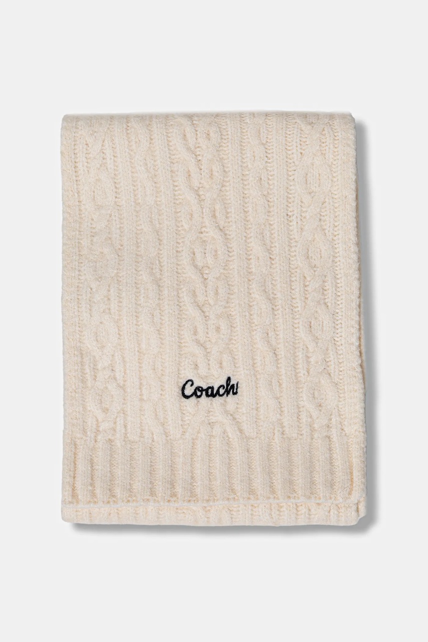 Coach szalik z domieszką wełny damski kolor beżowy gładki 29CCL89