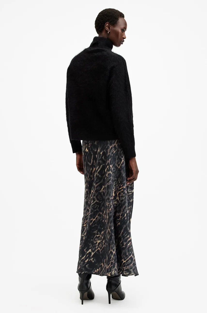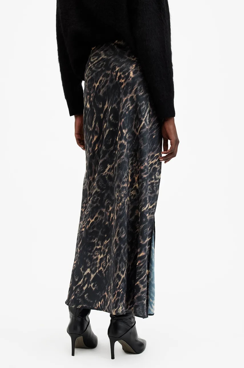 AllSaints spódnica BRYONY kolor brązowy midi rozkloszowana W069RB