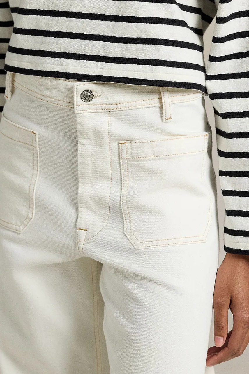 - Model z podwyższoną talią i zapięciem na guzik i suwak.