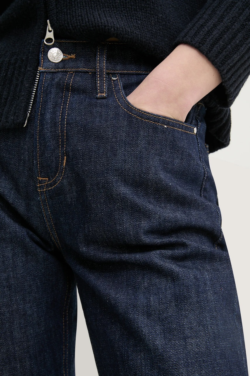 - Model z podwyższoną talią i zapięciem na guzik i suwak.