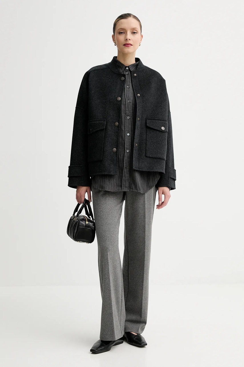 Marc O'Polo koszula bawełniana damska kolor szary regular z kołnierzykiem klasycznym 509117242197