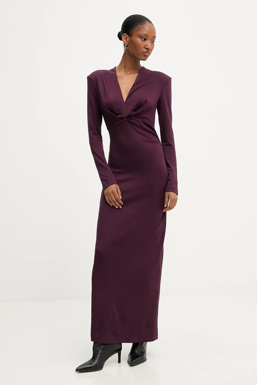 Answear.LAB sukienka kolor bordowy maxi dopasowana