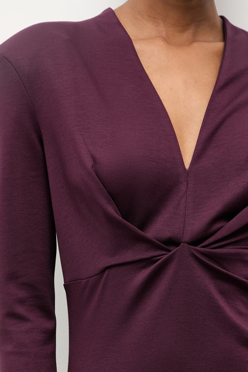- Model z ozdobnymi marszczeniami.