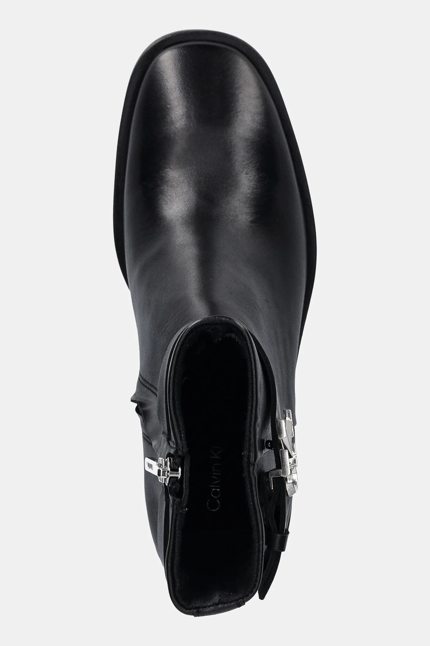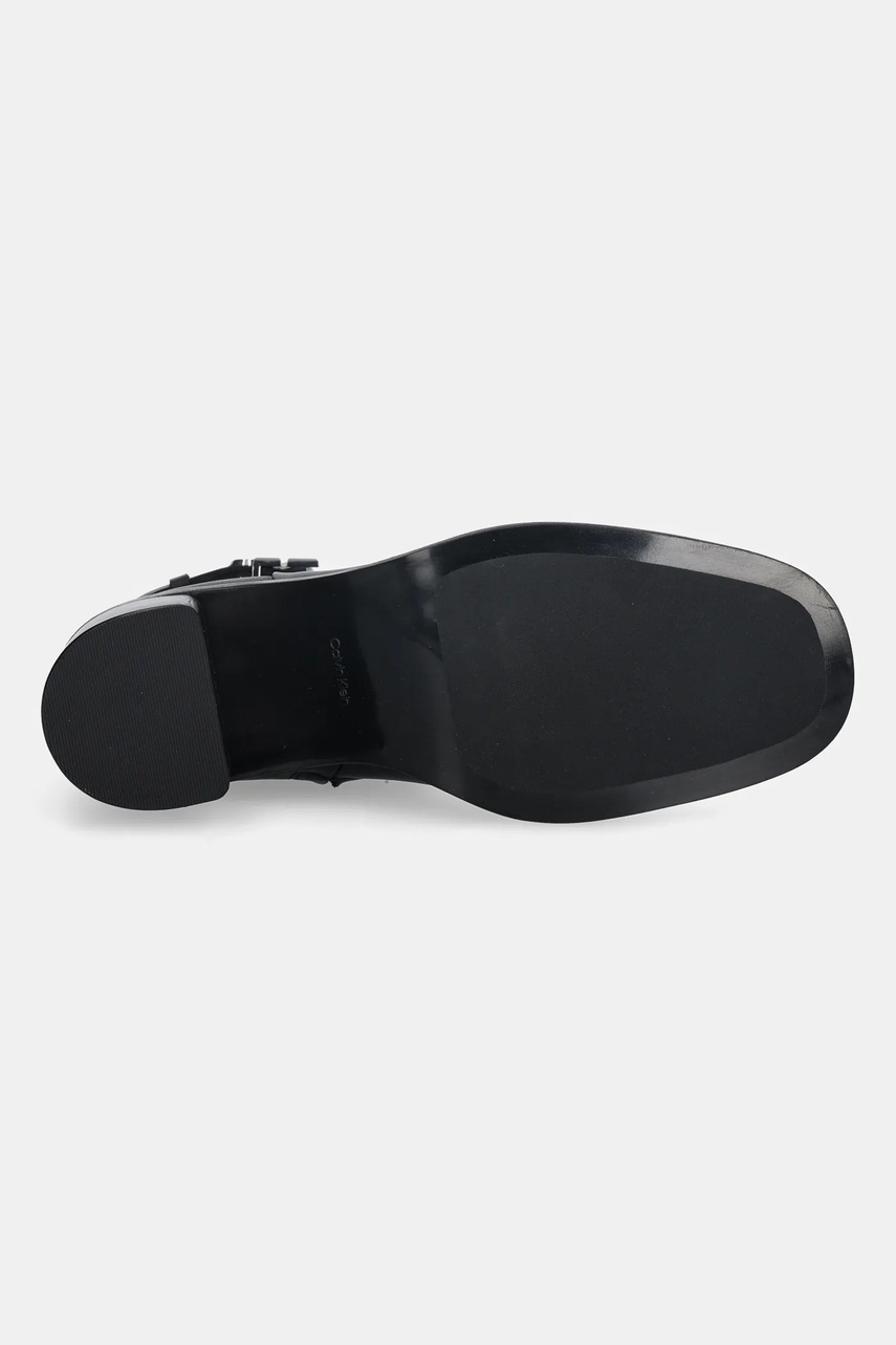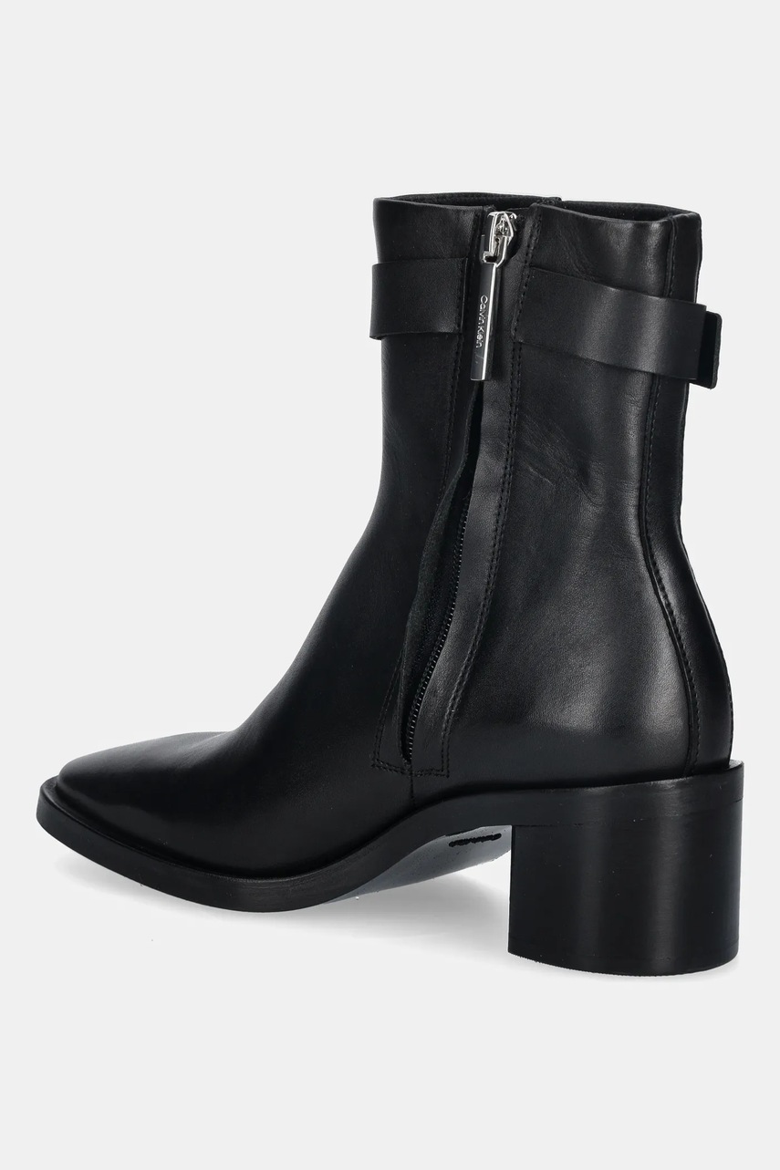 Calvin Klein botki skórzane BLOCK HEEL BOOT W/ METAL LOGO damskie kolor czarny na słupku HW0HW02591