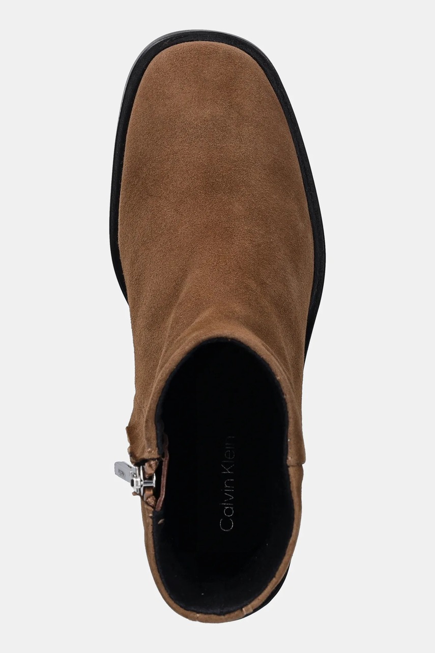 Calvin Klein botki zamszowe BLOCK HEEL ZIP BOOT SUE damskie kolor brązowy na słupku HW0HW02592