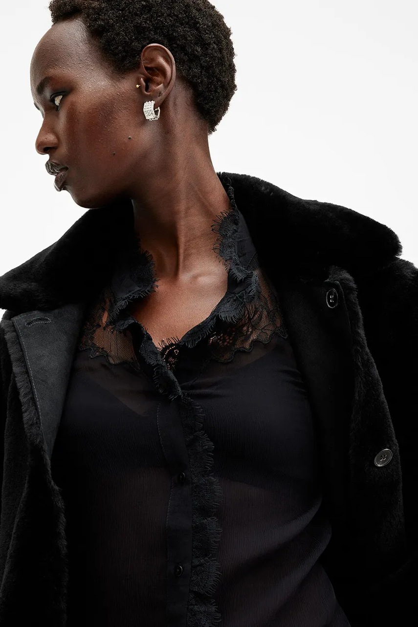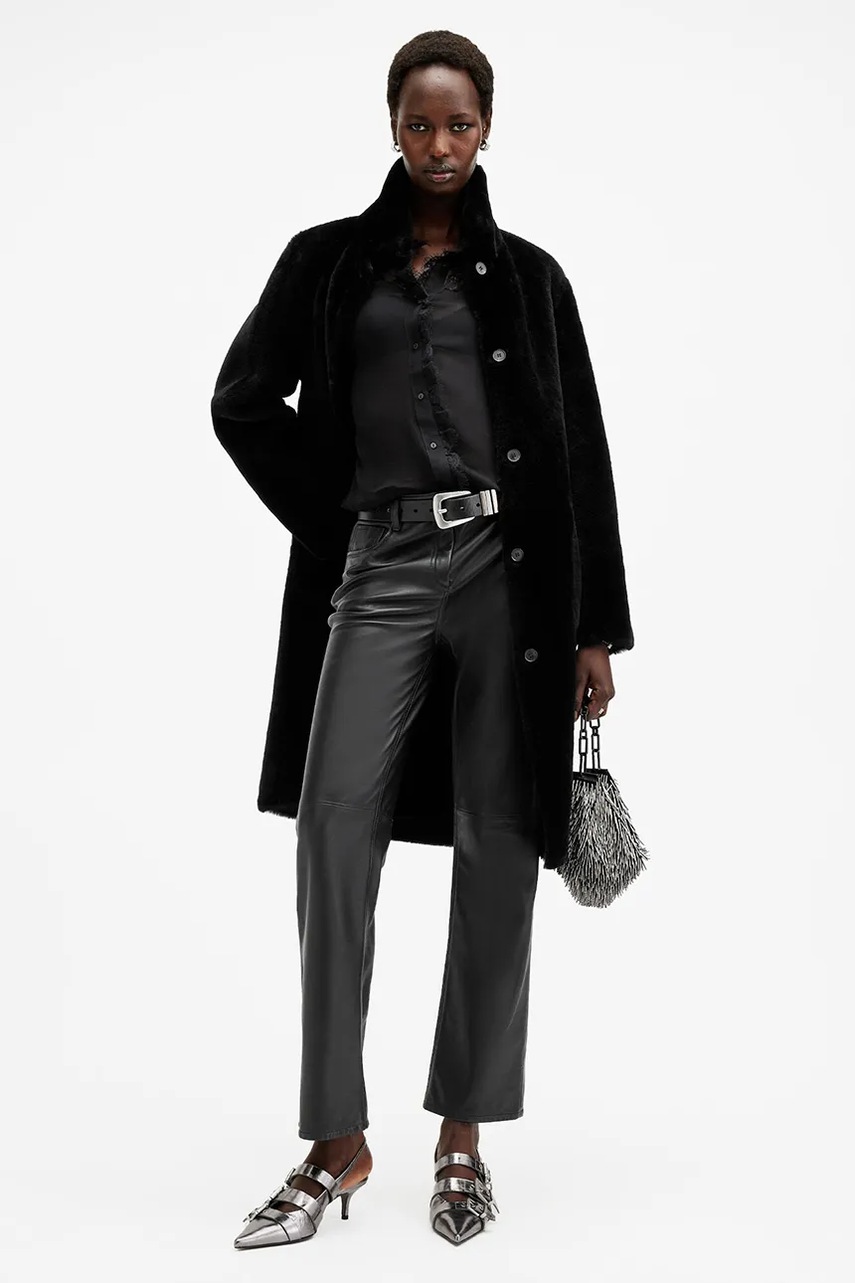 AllSaints płaszcz dwustronny SERRA damski kolor czarny zimowa W119LB