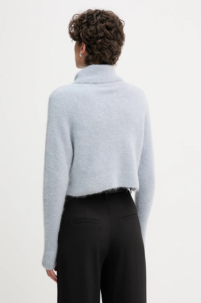 Sandro Ferrone sweter z dodatkiem alpaki damski kolor niebieski z golfem S9YBFNOME