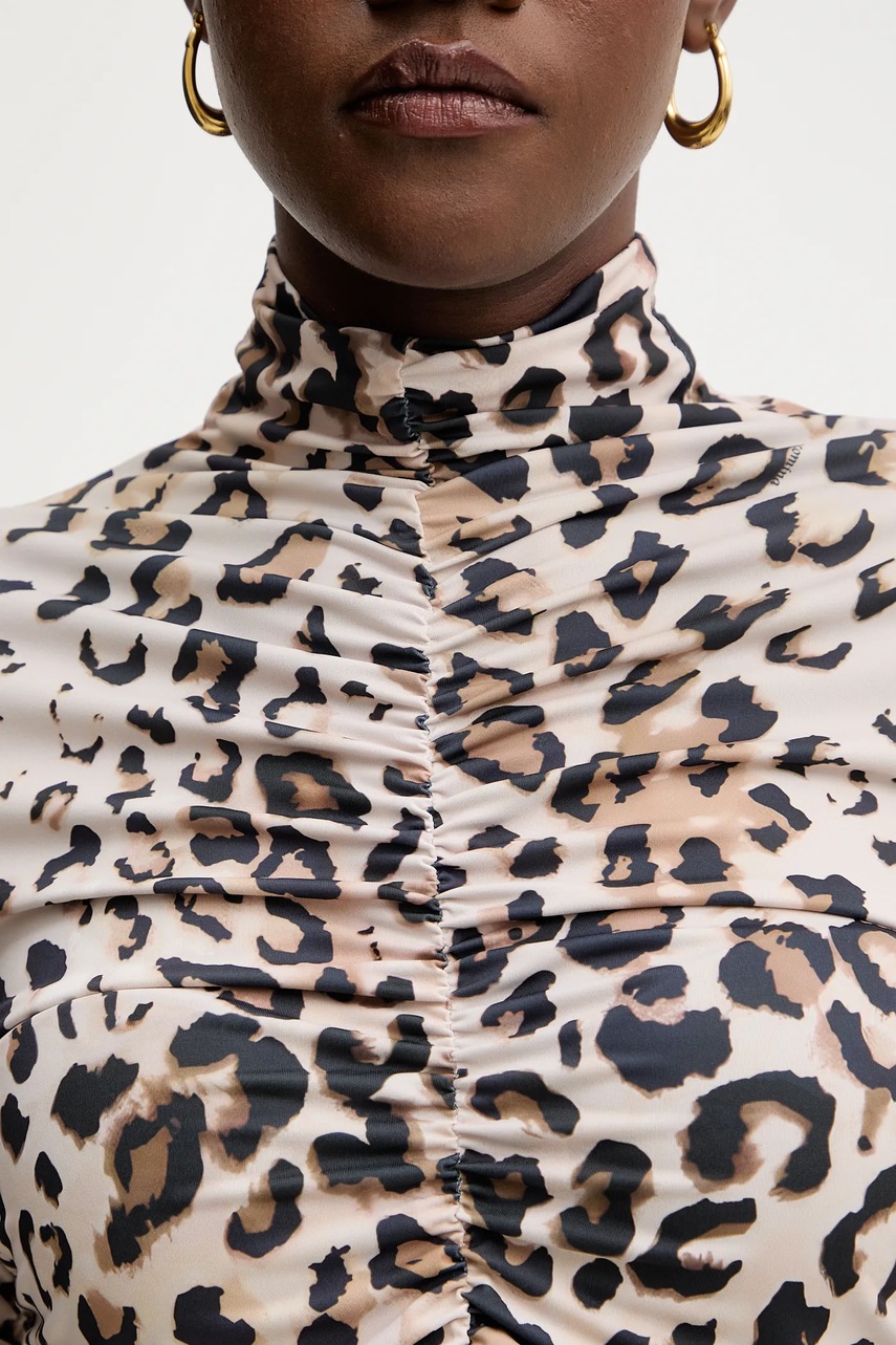 - Dopasowany fason z efektownymi marszczeniami.