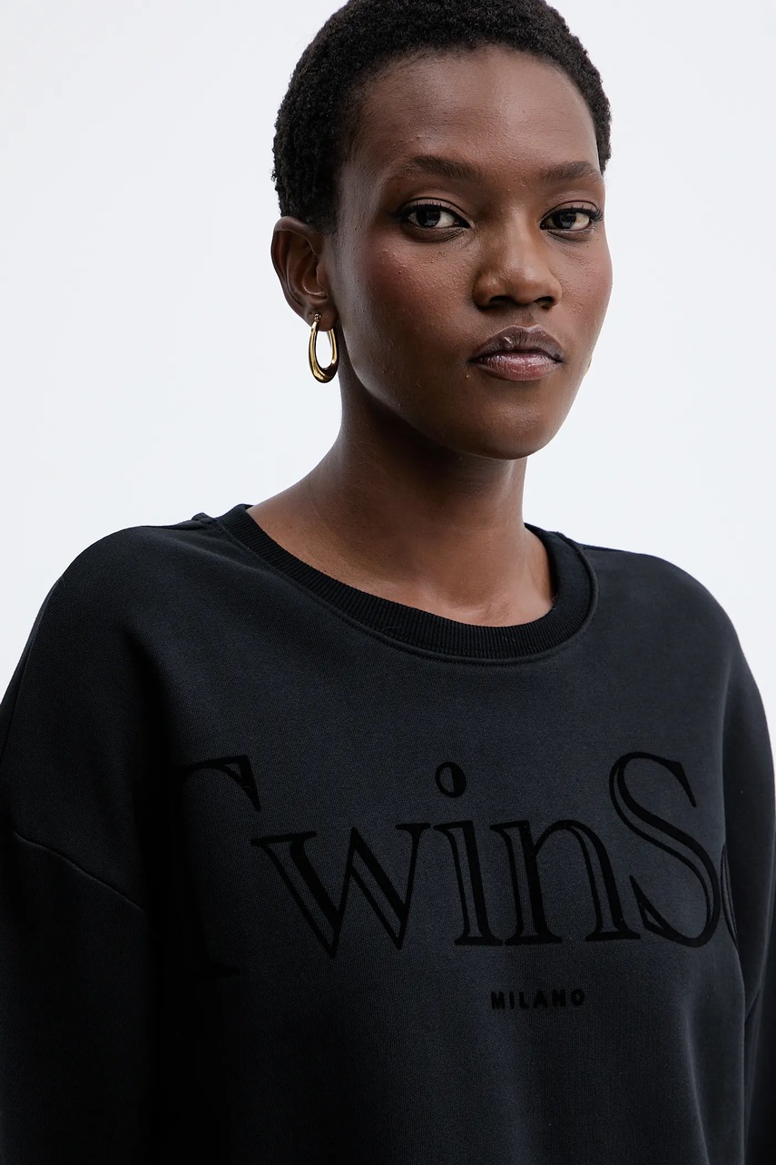 Twinset bluza bawełniana damska kolor czarny z nadrukiem 252TT2330
