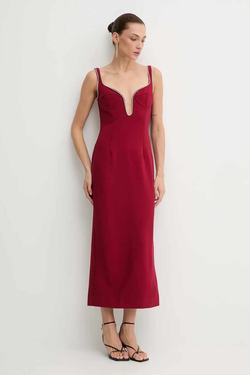 Bardot sukienka kolor bordowy maxi prosta 59009DB2