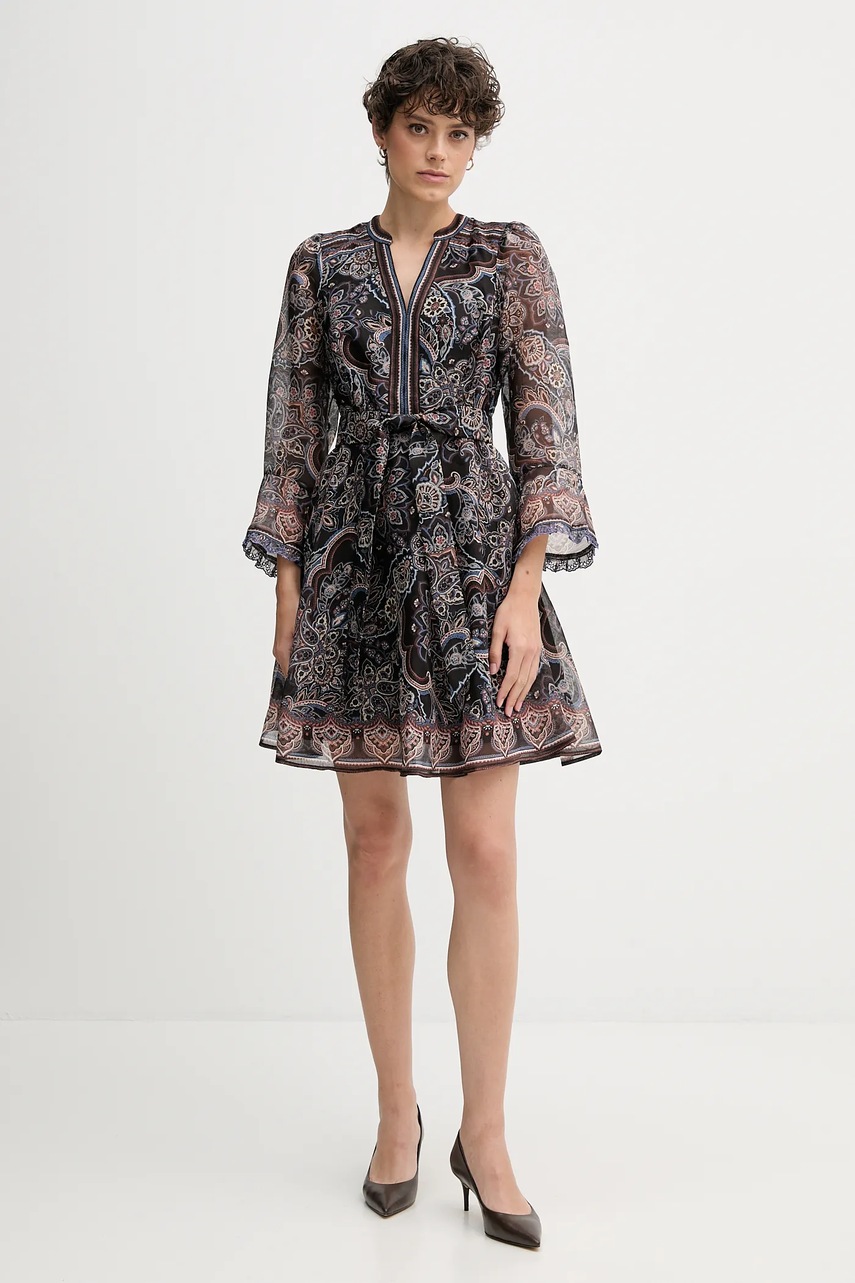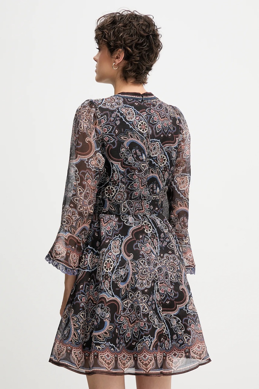 Hale BOB sukienka z dodatkiem jedwabiu kolor brązowy mini rozkloszowana 57RW644A