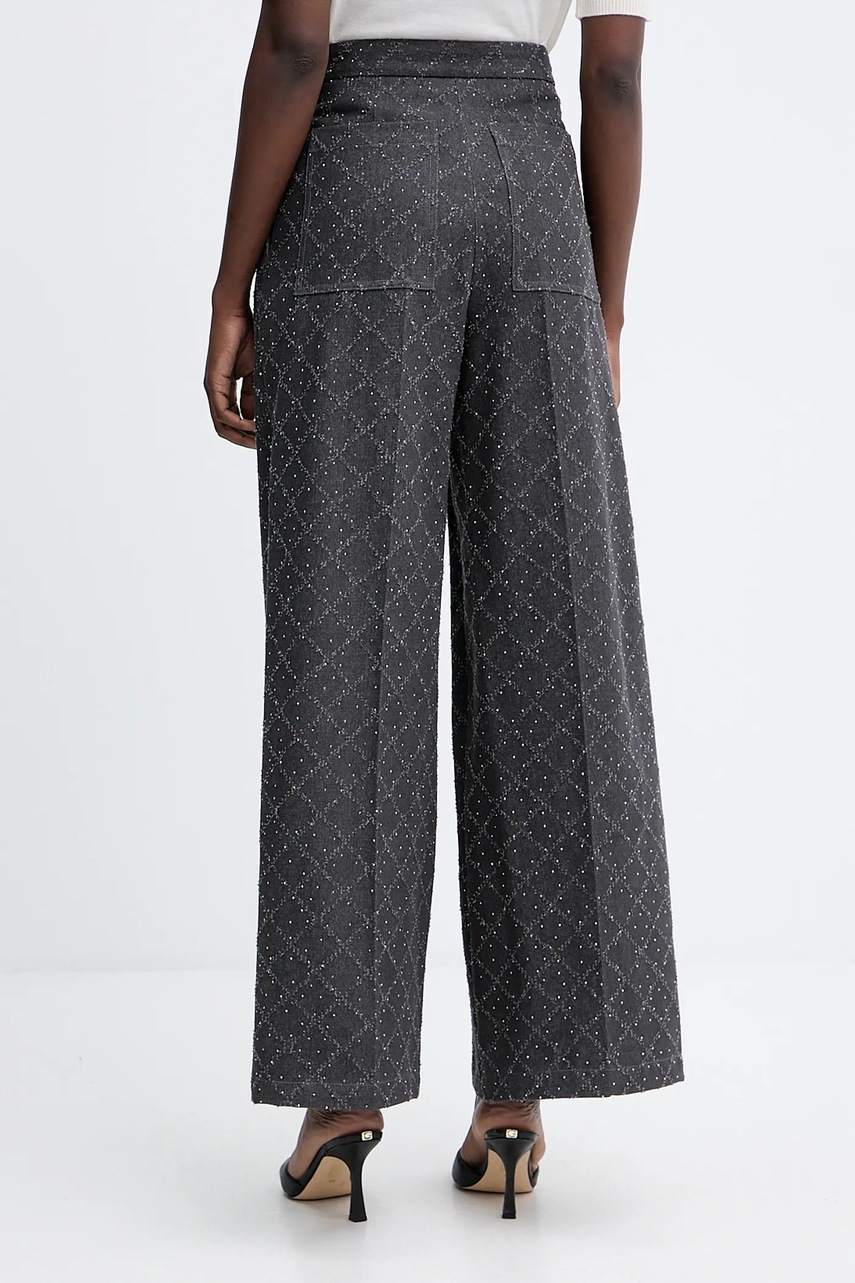 Simona Corsellini spodnie bawełniane damskie kolor szary szerokie high waist A25CPPA01001