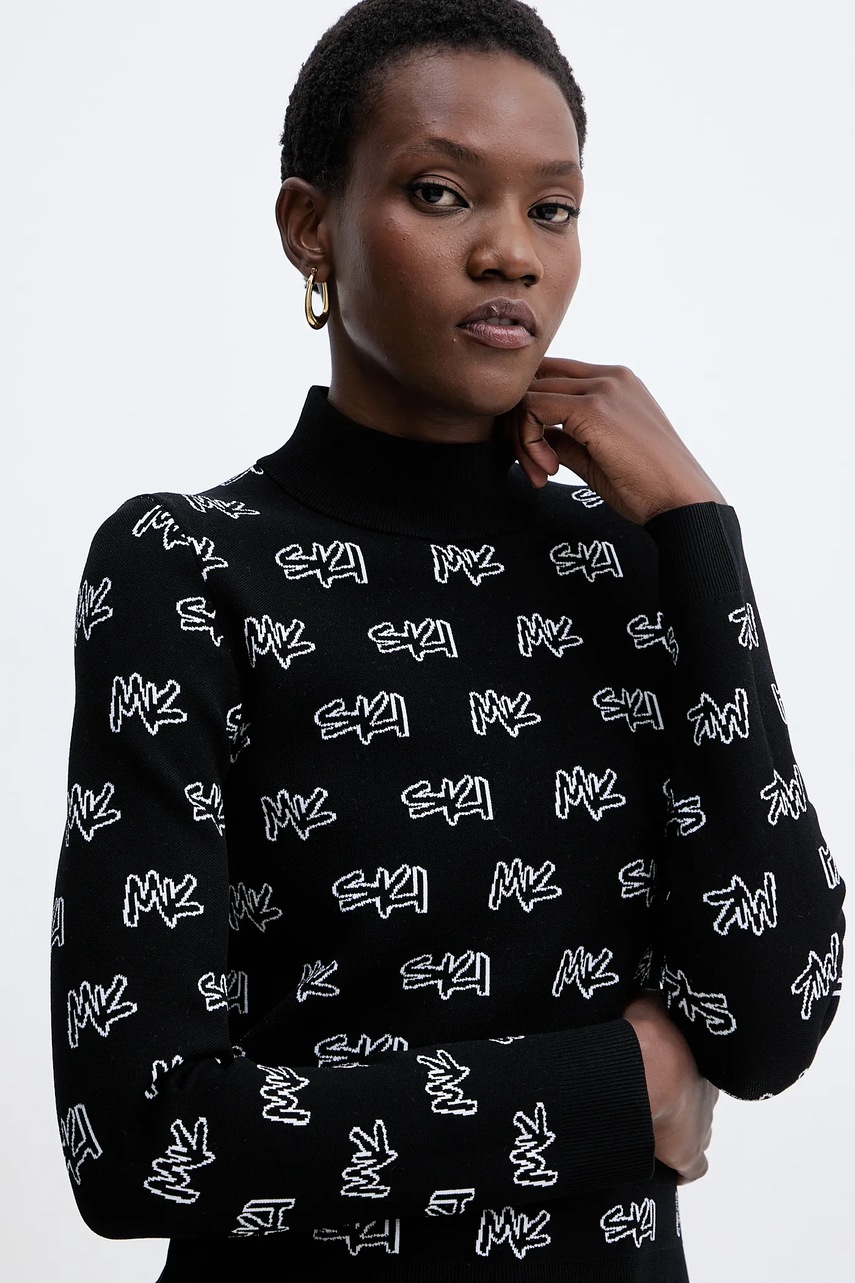 MICHAEL Michael Kors sweter damski kolor czarny lekki z półgolfem MF561COK0M