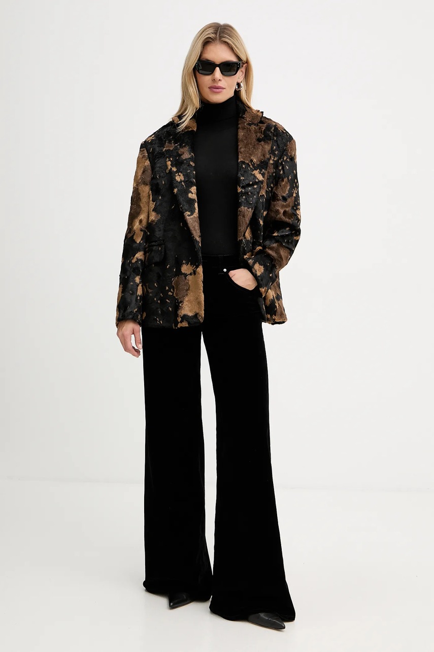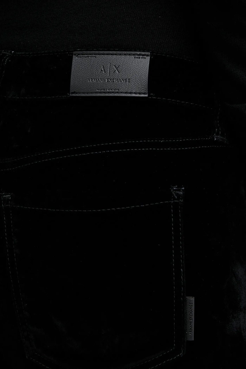 Armani Exchange spodnie welurowe damskie kolor czarny proste high waist XW001184 AF16093