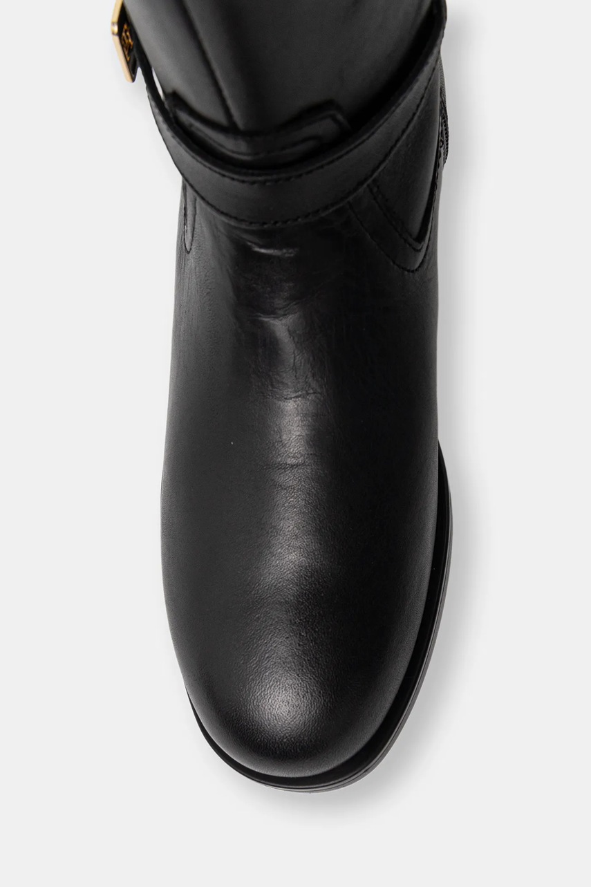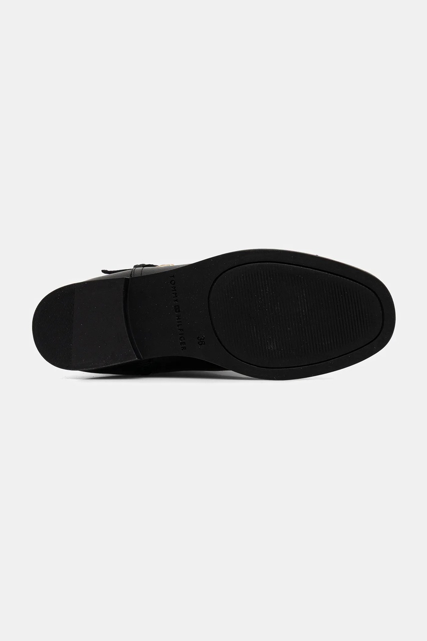 Tommy Hilfiger kozaki skórzane TH BUCKLE RIDING LTHR LONG BOOT damskie kolor czarny na płaskim obcasie FW0FW08873