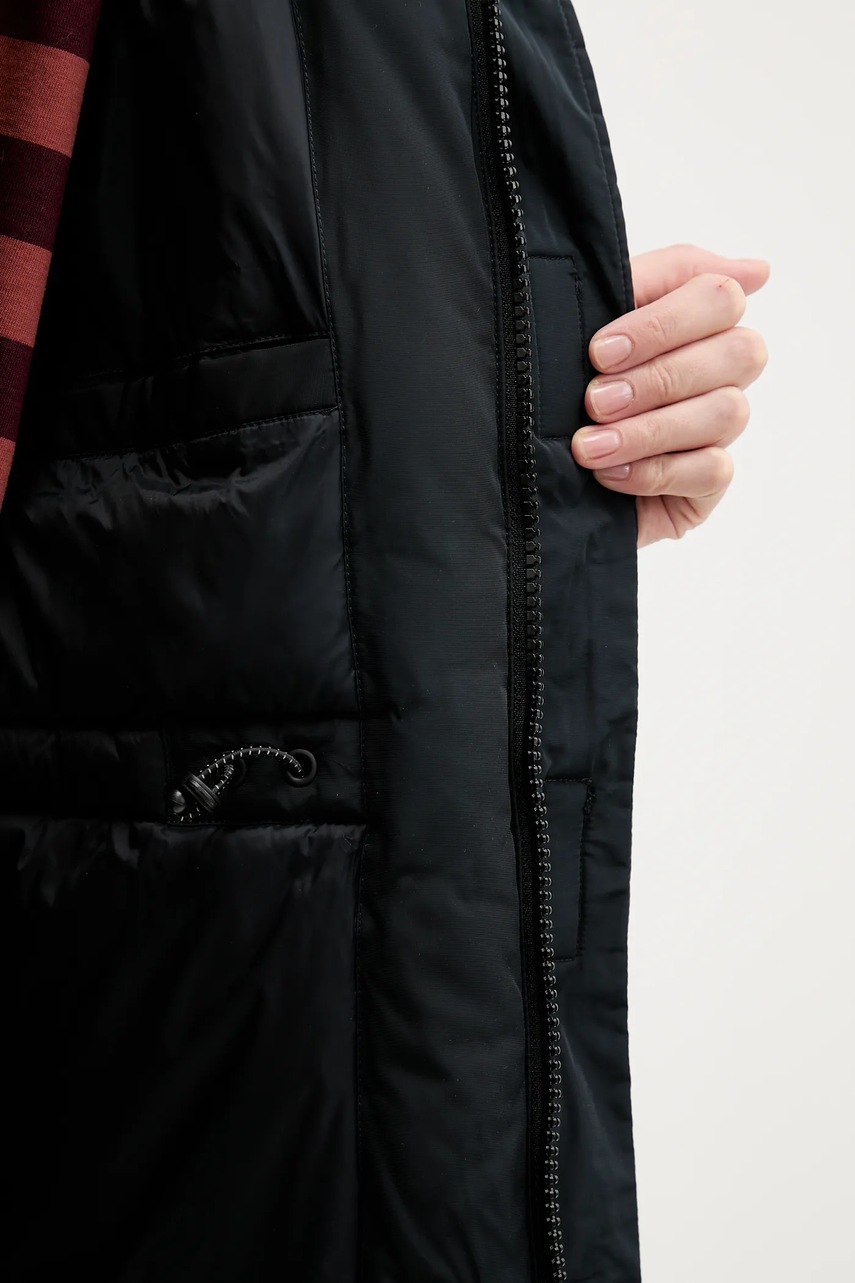 - Hydrofobowe wykończenie materiału wierzchniego nie pozwala dostać się wilgoci do wewnątrz, dzięki czemu dobrze chroni przed niekorzystnymi warunkami atmosferycznymi.