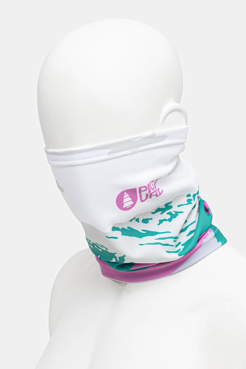 - Odpowiednia konstrukcja pozwala nasunąć komin na nos i usta, aby zapewnić ochronę przed wiatrem i mrozem lub zsunąć, gdy nie jest już potrzebna.