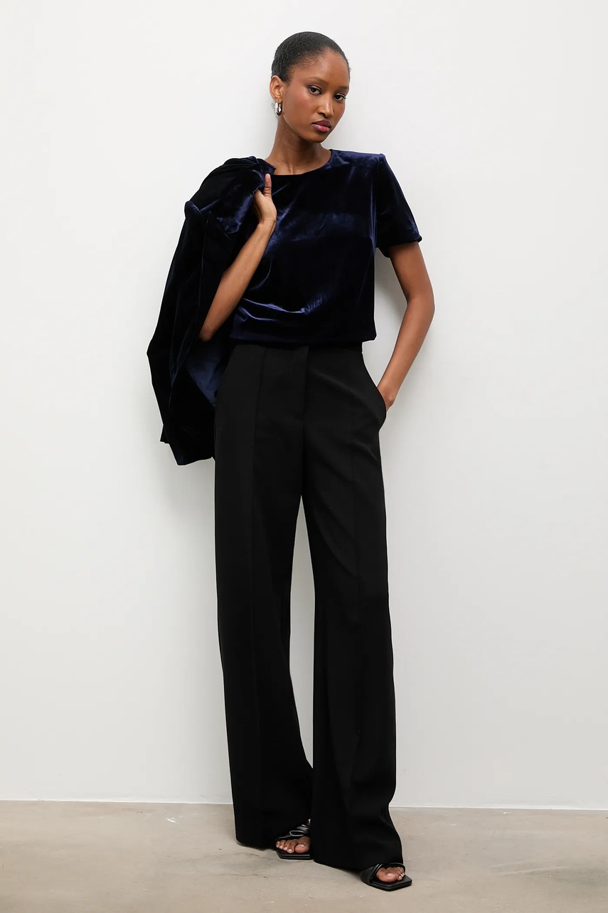 Answear.LAB bluzka welurowa damska kolor granatowy gładka
