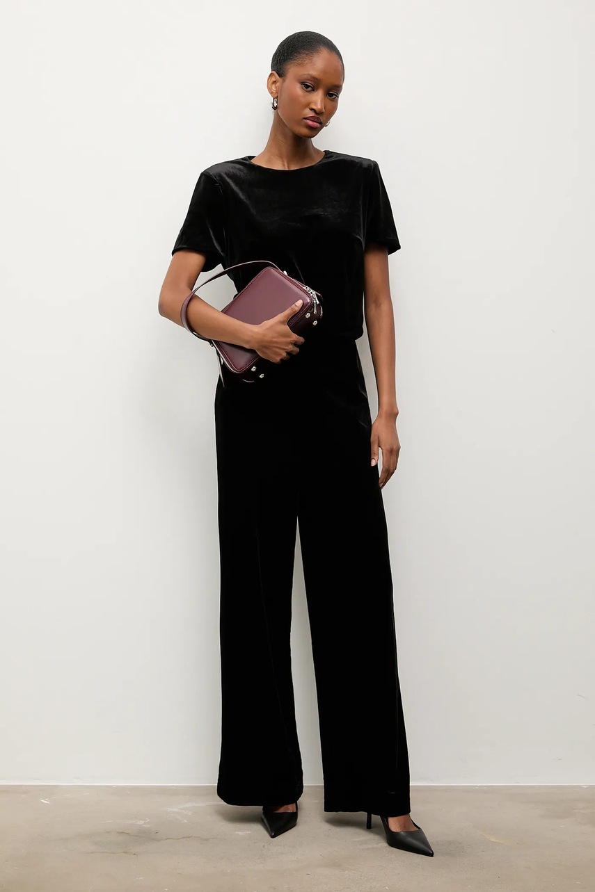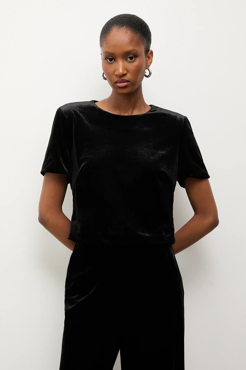 Answear.LAB bluzka welurowa damska kolor czarny gładka