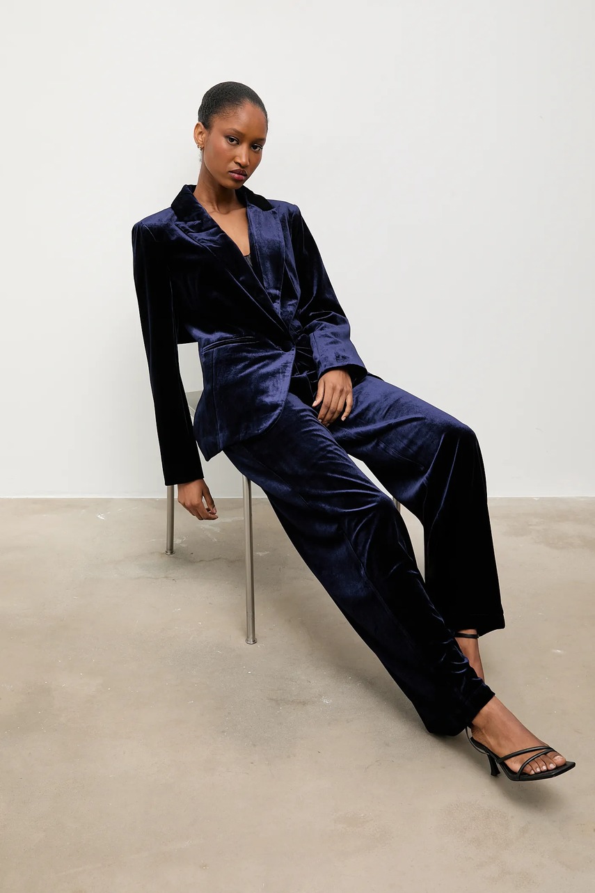 Answear.LAB spodnie welurowe damskie kolor granatowy szerokie high waist