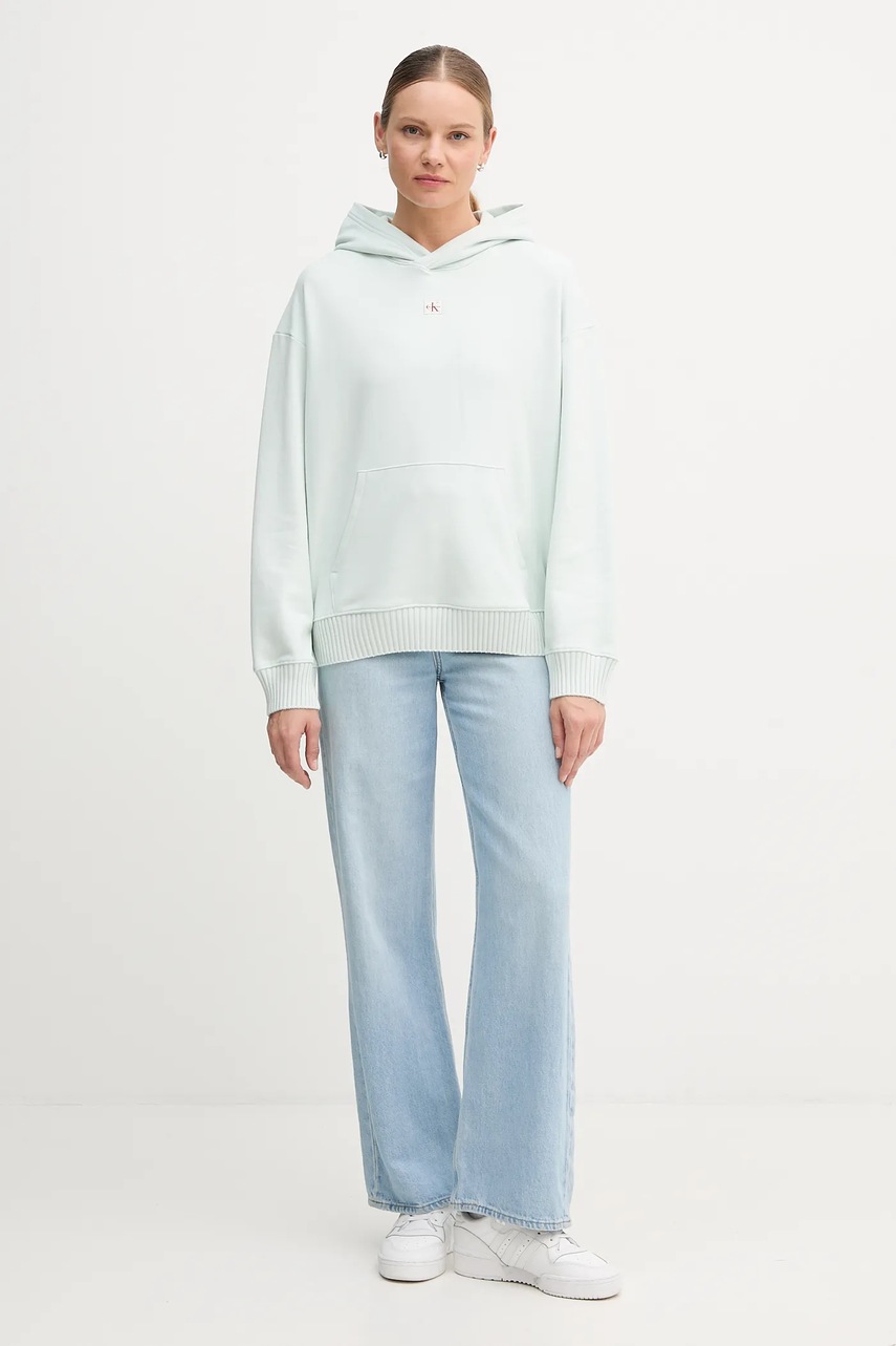 Calvin Klein Jeans bluza bawełniana damska z kapturem gładka LV047D232G