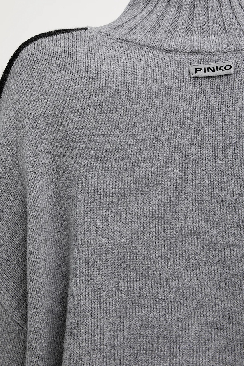 Pinko sweter wełniany damski kolor szary lekki z golfem 105396 A2PL