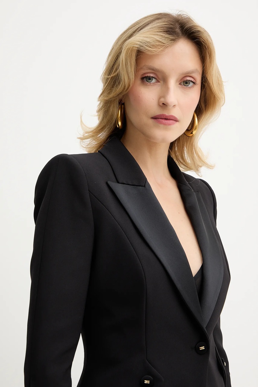 Elisabetta Franchi marynarka kolor czarny jednorzędowa gładka GI15456E2
