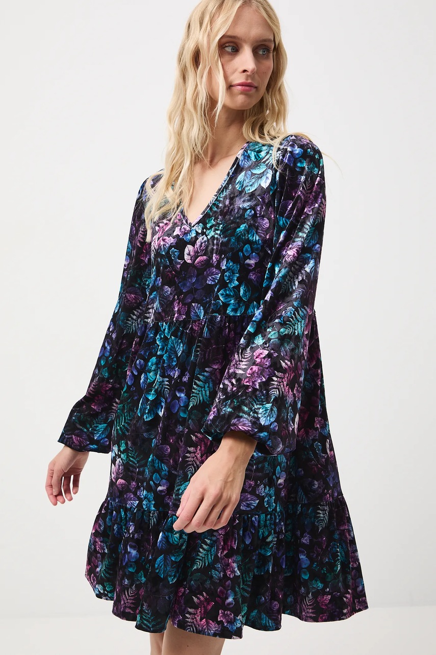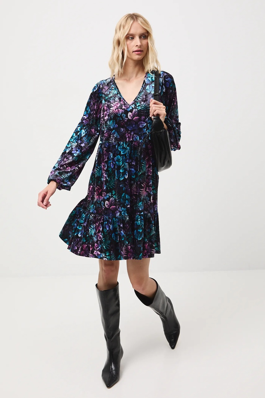 - Model z ozdobnymi falbanami.
